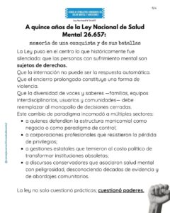 Hubo intentos de reformarla para reinstalar lógicas tutelantes; campañas mediáticas que utilizaron casos aislados para reinstalar la idea de “peligrosidad”; operadores que exigieron el regreso a modelos psiquiátricos cerrados; tribunales que intentaron retrotraer derechos conquistados; e incluso funcionarios que interpretaron la ley como un obstáculo en lugar de como un horizonte ético.