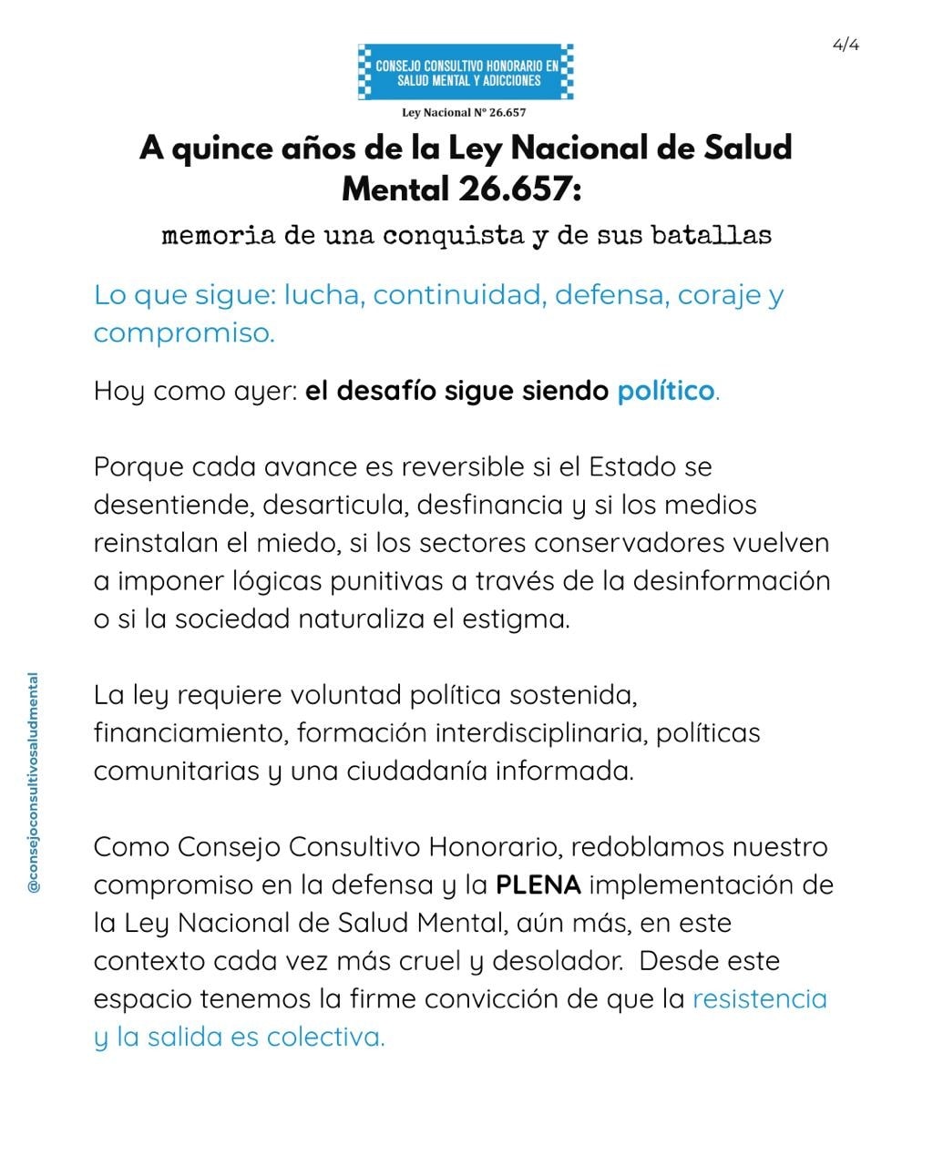 Como integrantes del #ConsejoConsultivoHonorarioEnSaludMentalYAdicciones, adherimos y compartimos el posicionamiento conjunto de las organizaciones que conformamos el CCH.